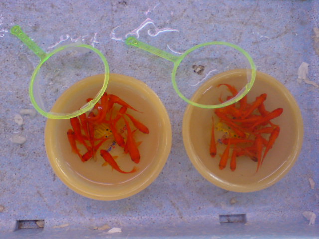 で、金魚掬いをいつも通りしました(1ポイ(掬う道具)対決)。うん、いつもここに来るとやります。なのでそこのおばちゃんとおじちゃんとも顔見知り。