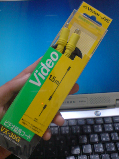 RCAケーブルの黄色(別に何色でもいいんですが)1本線(3本ない1本のケーブル)が売っていたので値切って買いました。